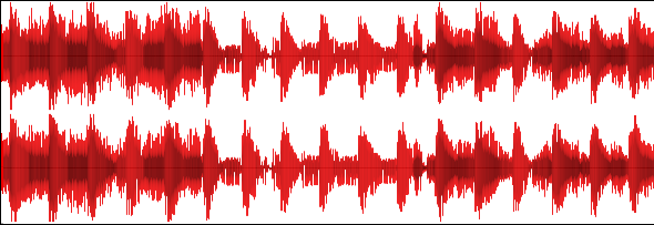 When the audio signal moves slower (ie: low frequencies) the centre region is shaded lighter. This actually corresponds to exactly what the waveform looks like when you zoom in on it so far that you can see the individual cycles.